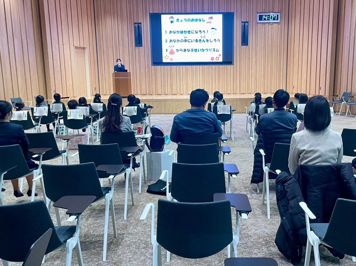 当日は、4月から新小学1年生になる子どもたちとご家族の皆さまにご参加いただき、消化・吸収のしくみや、良い便を出すための生活習慣のポイントについてお話ししました。
