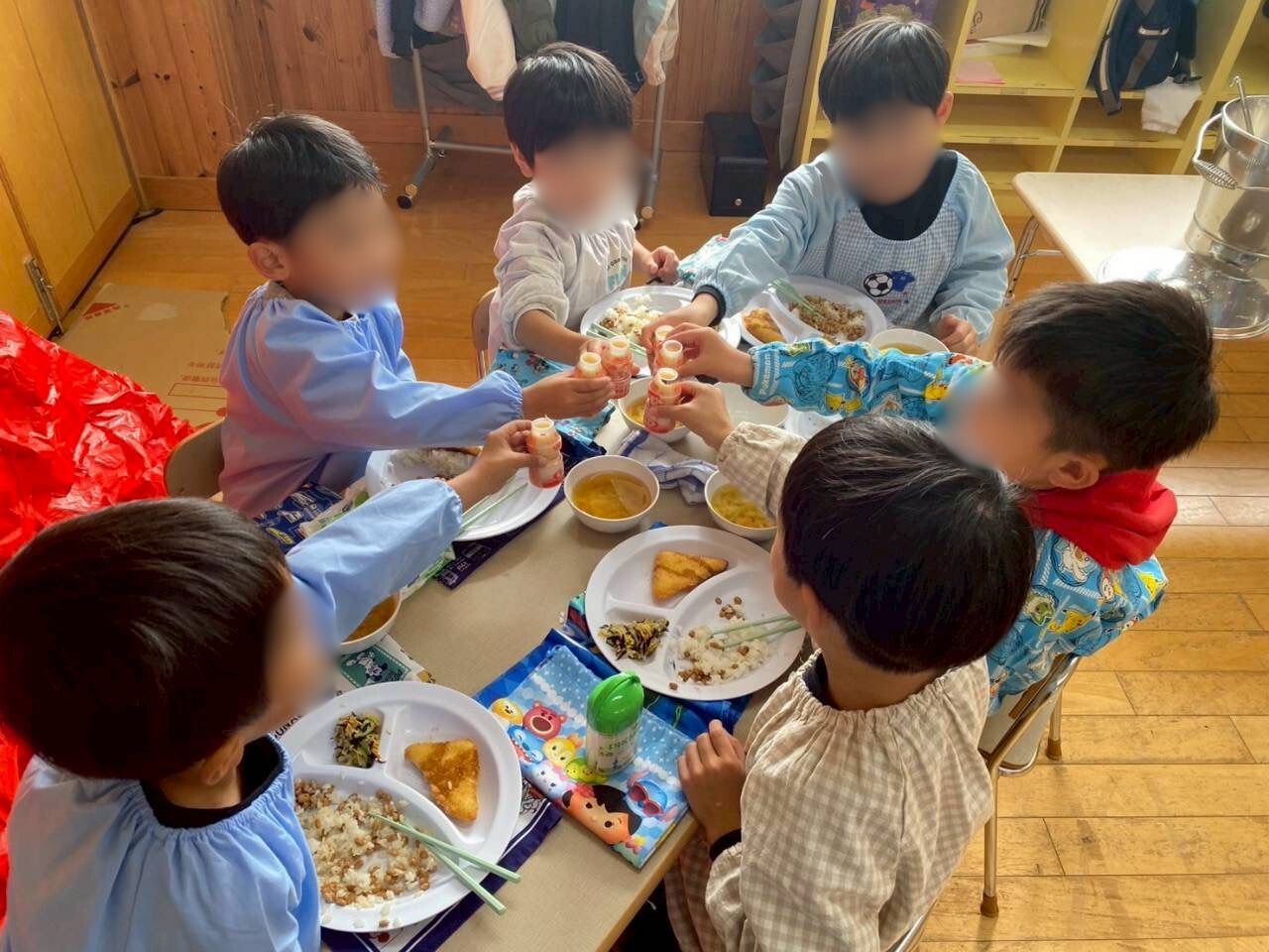 また、お渡ししたヤクルトは給食の時間にみんなで乾杯して喜んでいただけたようです。