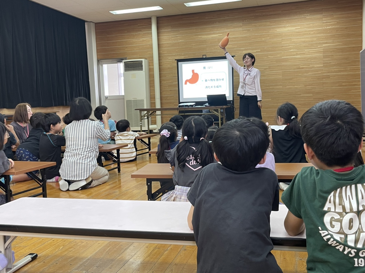 教室では、毎日を元気に過ごすための合言葉として「早ね・早起き、朝ごはん、朝うんち」の3つを一緒に学びました。子どもたちも声をそろえて約束してくれるなど、楽しく取り組む姿が印象的でした☺