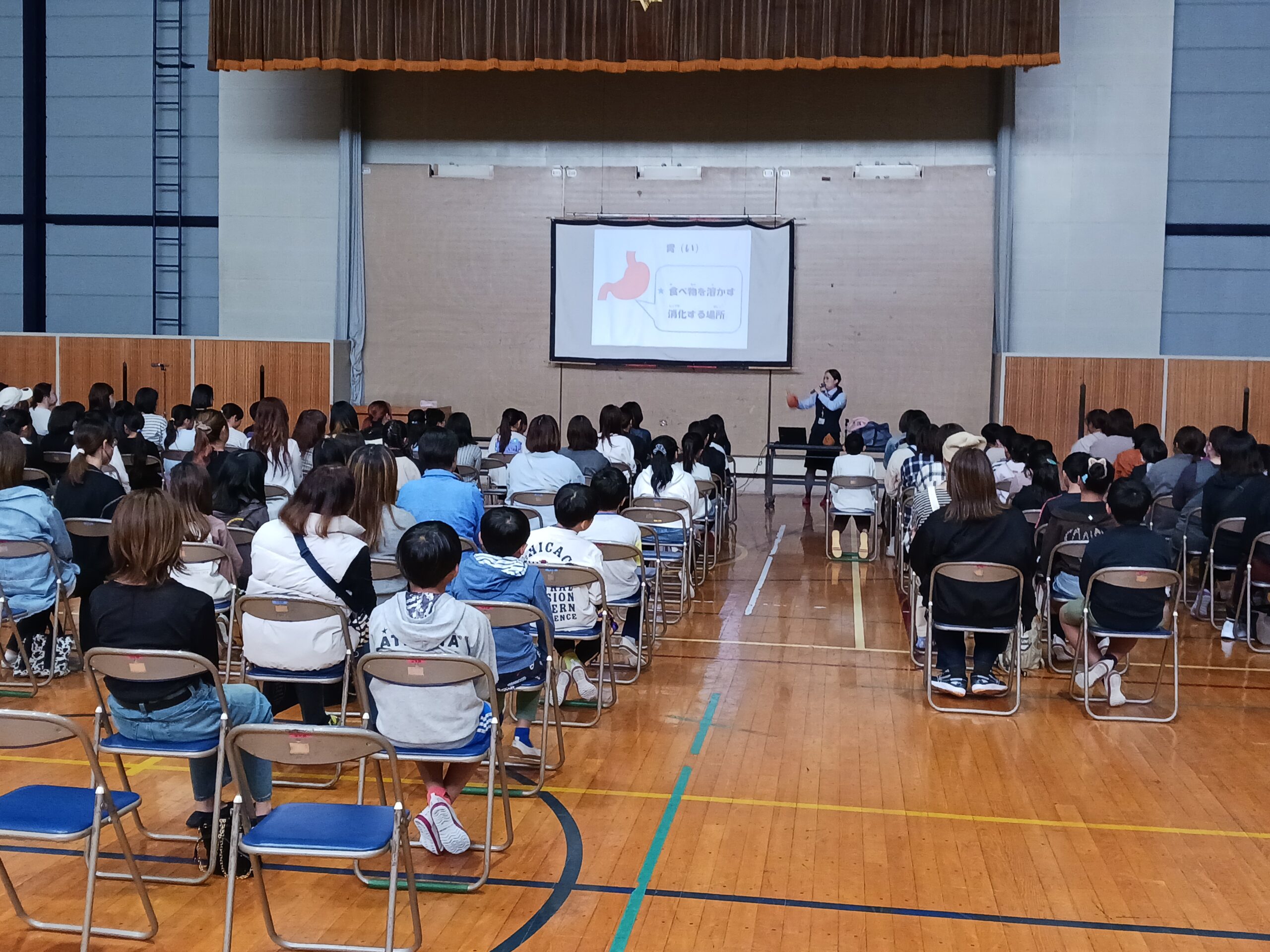 10月27日(月)、鹿沼市立北押原小学校4年生の親子のみなさま117名に向けて、「おなか元気教室」を実施しました。